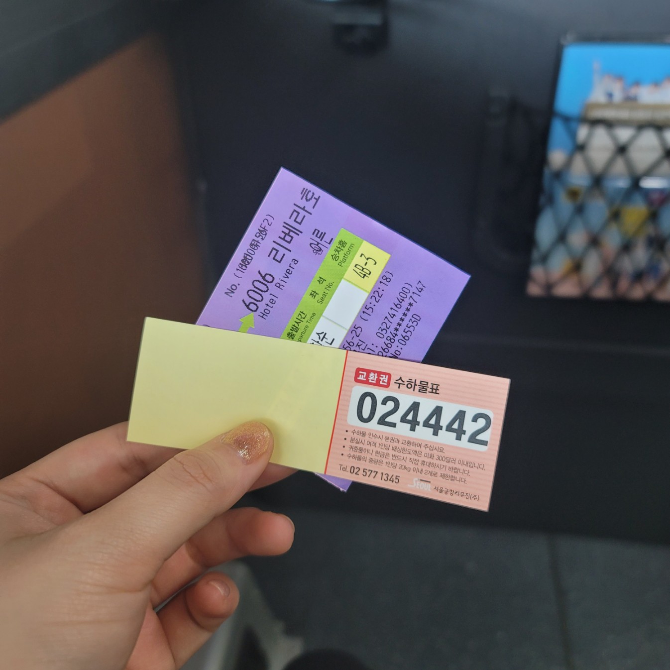 기다리면 금방 온다. 아저씨가 버스에 짐을 실어 주시고 저런 수화물 교환권을 주신다.