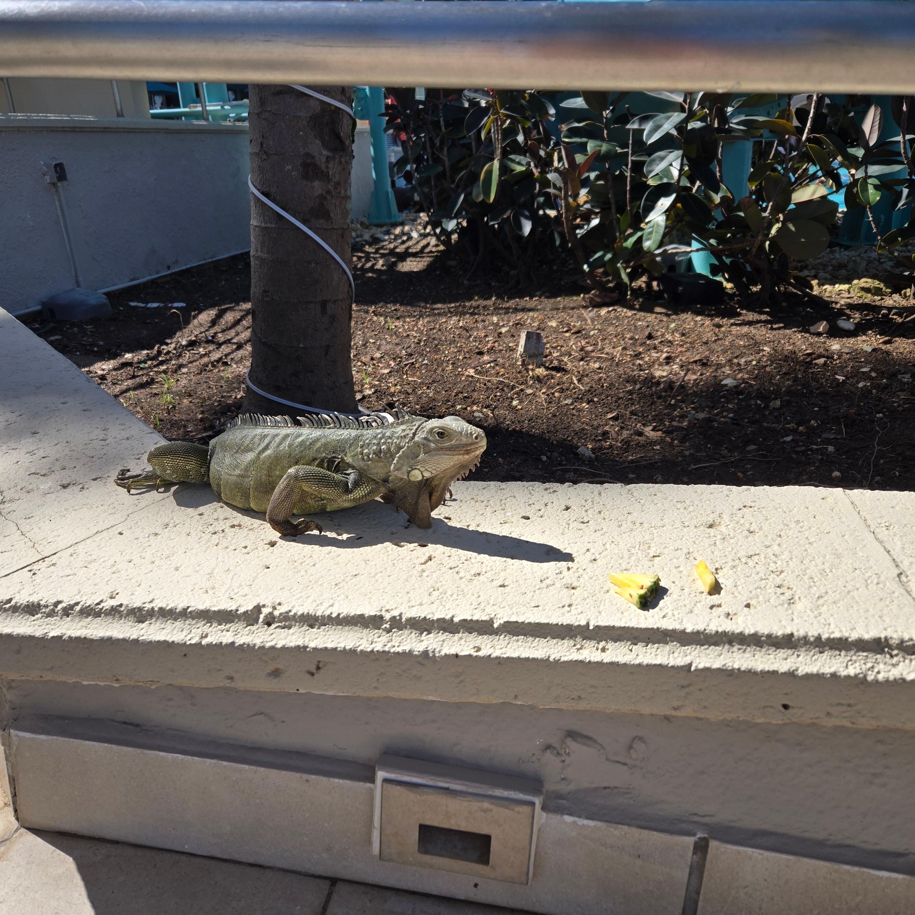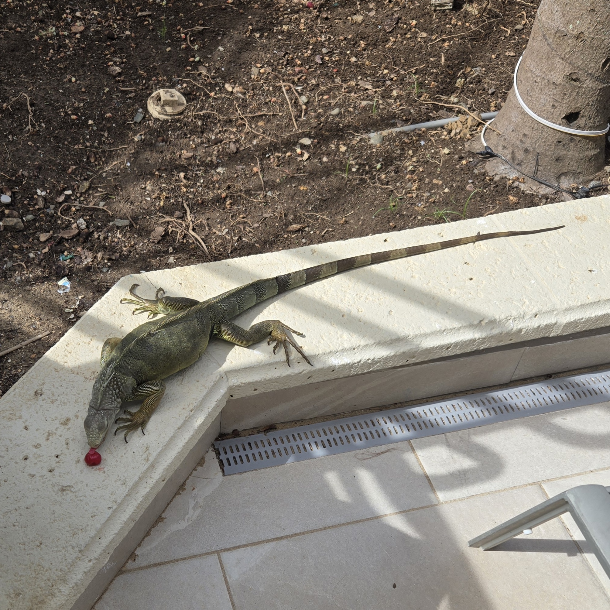 다 마시고 난 피냐콜라다에 장식으로 올라가 있던 파인애플을 주니 잘 먹는 이구아나쨩