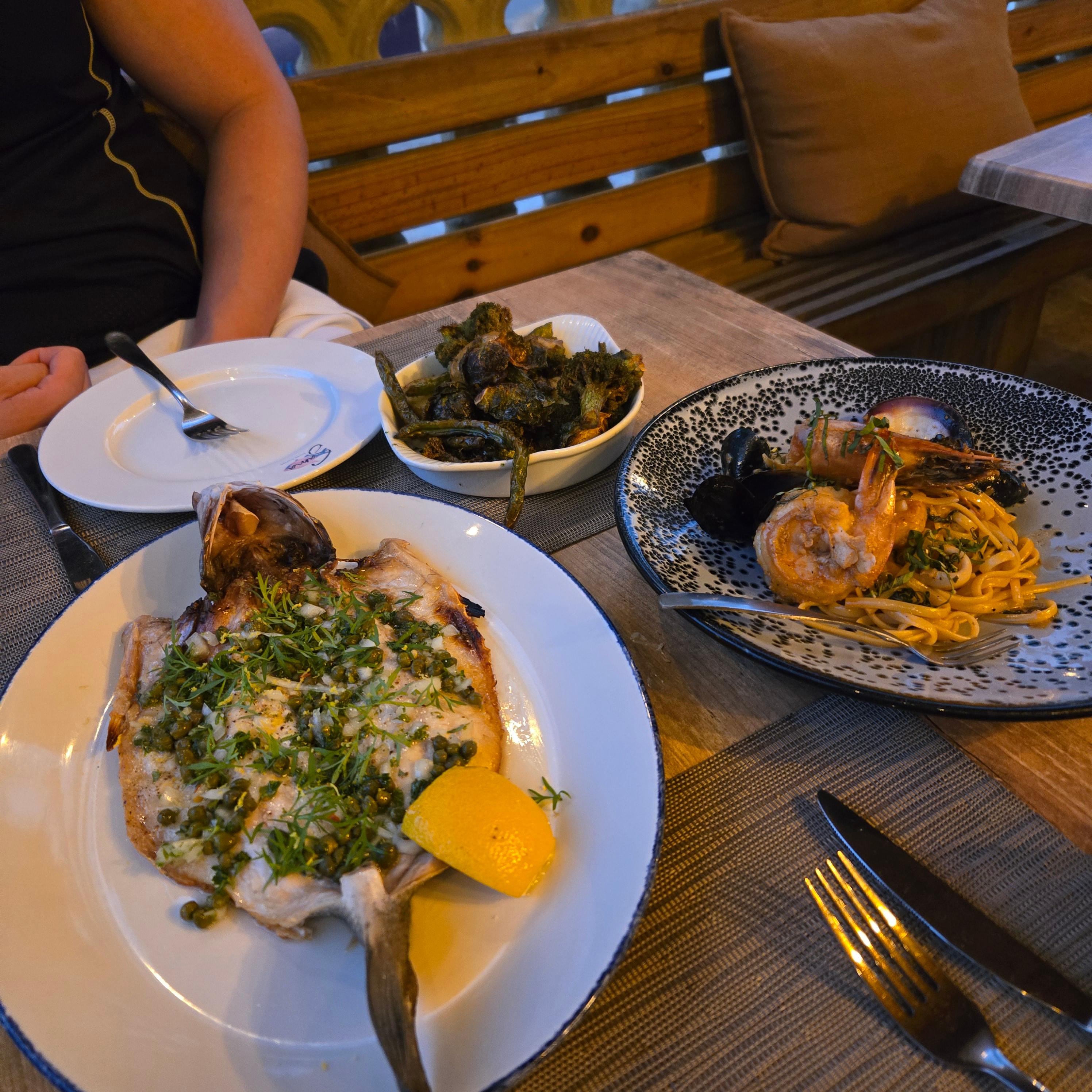 브란지노 라는 흰살 생선(고급 레스토랑에서 많이 사용하고, 가격이 비쌈) 요리와 allo scoglio 라는 해산물 오일 파스타를 시켰다.