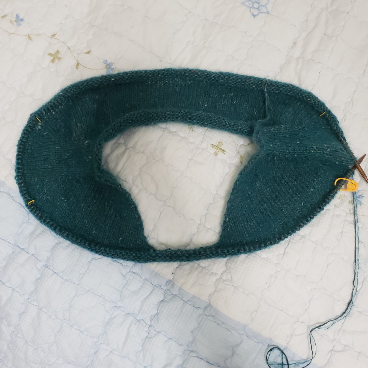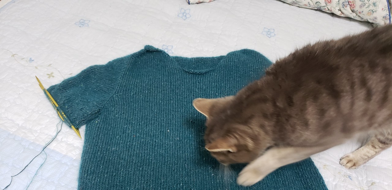 중간에 실이 모자라서 Madelinetosh 를 취급하는 로컬 실가게에서 주문해서 받느라고