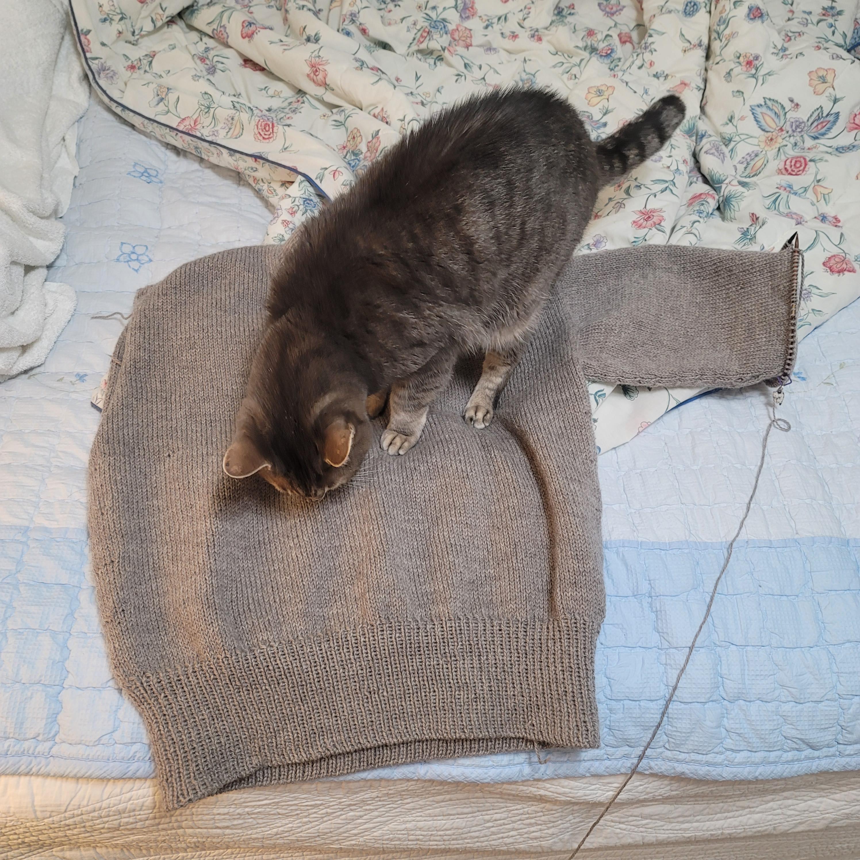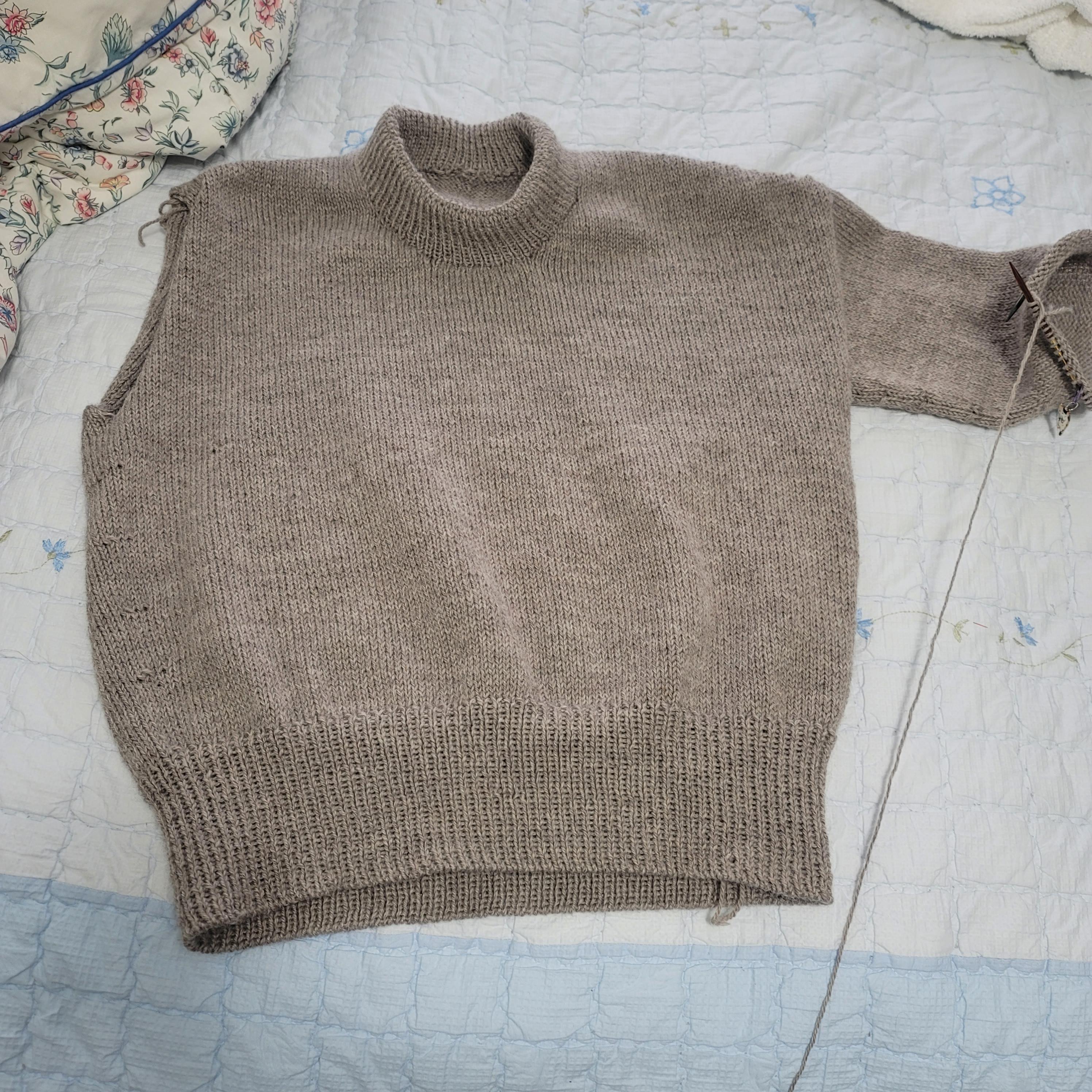 남편 스웨터를 같은 도안 3XL 사이즈로 넉넉하게 떠주고 있는데