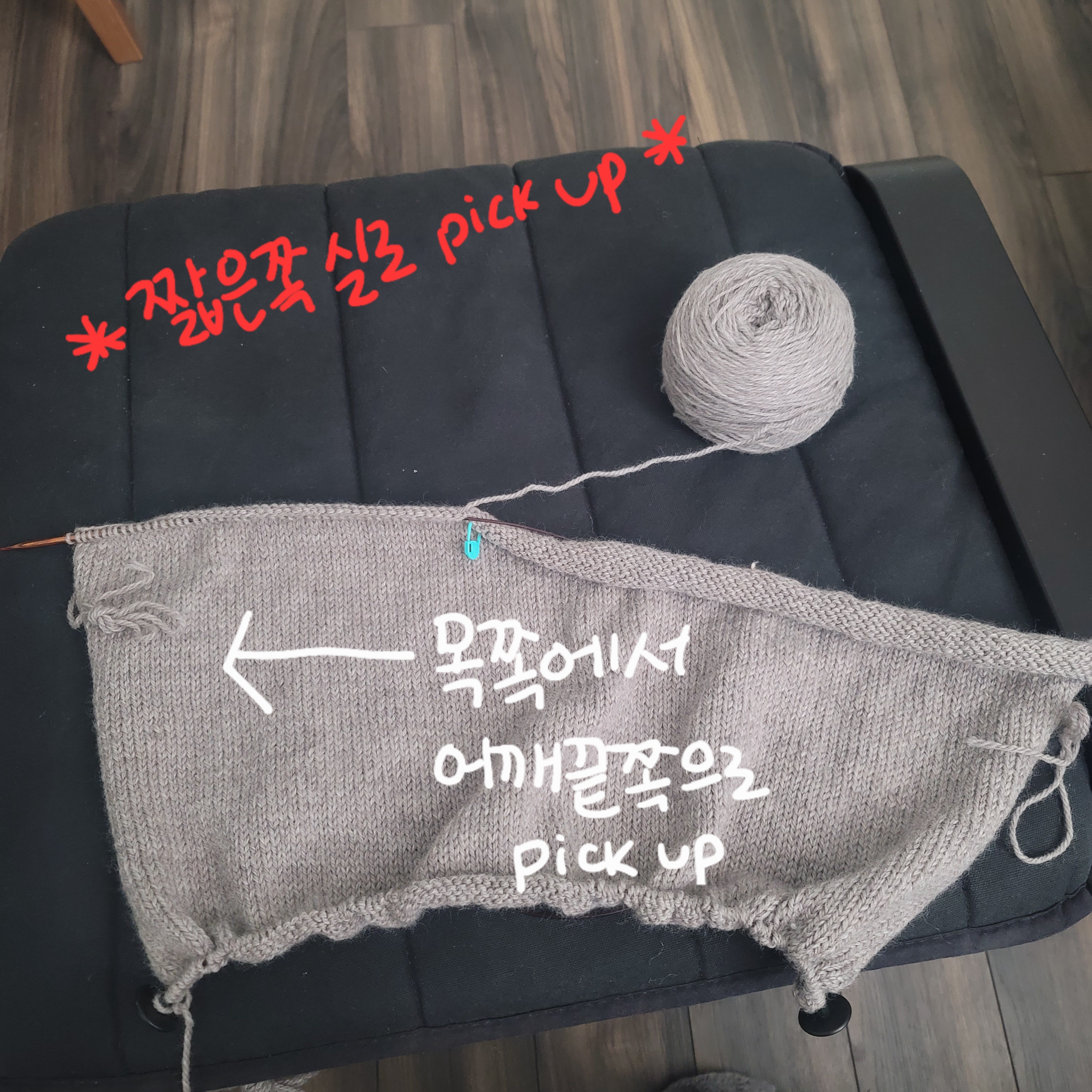 이때 니트프로 데님 숏팁을 써서 팔부분을 진짜 빨리 떴다